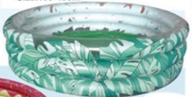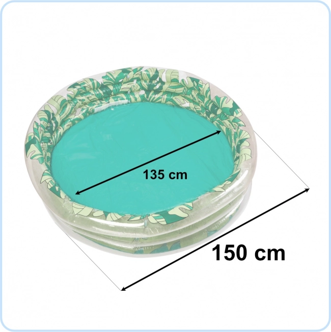 Dieser schöne aufblasbare Pool mit grafischen grünen Blättern wird eine wunderbare Dekoration für Ihren Garten und ein Ort für unvergesslichen Spaß Ihres Kindes sein. Dank seiner Abmessungen - Durchmesser 150 cm, Innendurchmesser 135 cm - ist er ausreichend geräumig für mehrere Kinder.