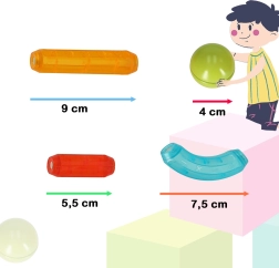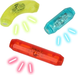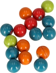 Lieferumfang (52 Teile): 16× bunte Kugel mit Motiven, 8× Leuchtelemente in 3 Größen, 16× kurzer Stab, 6× langer Stab, 6× gebogener Stab.