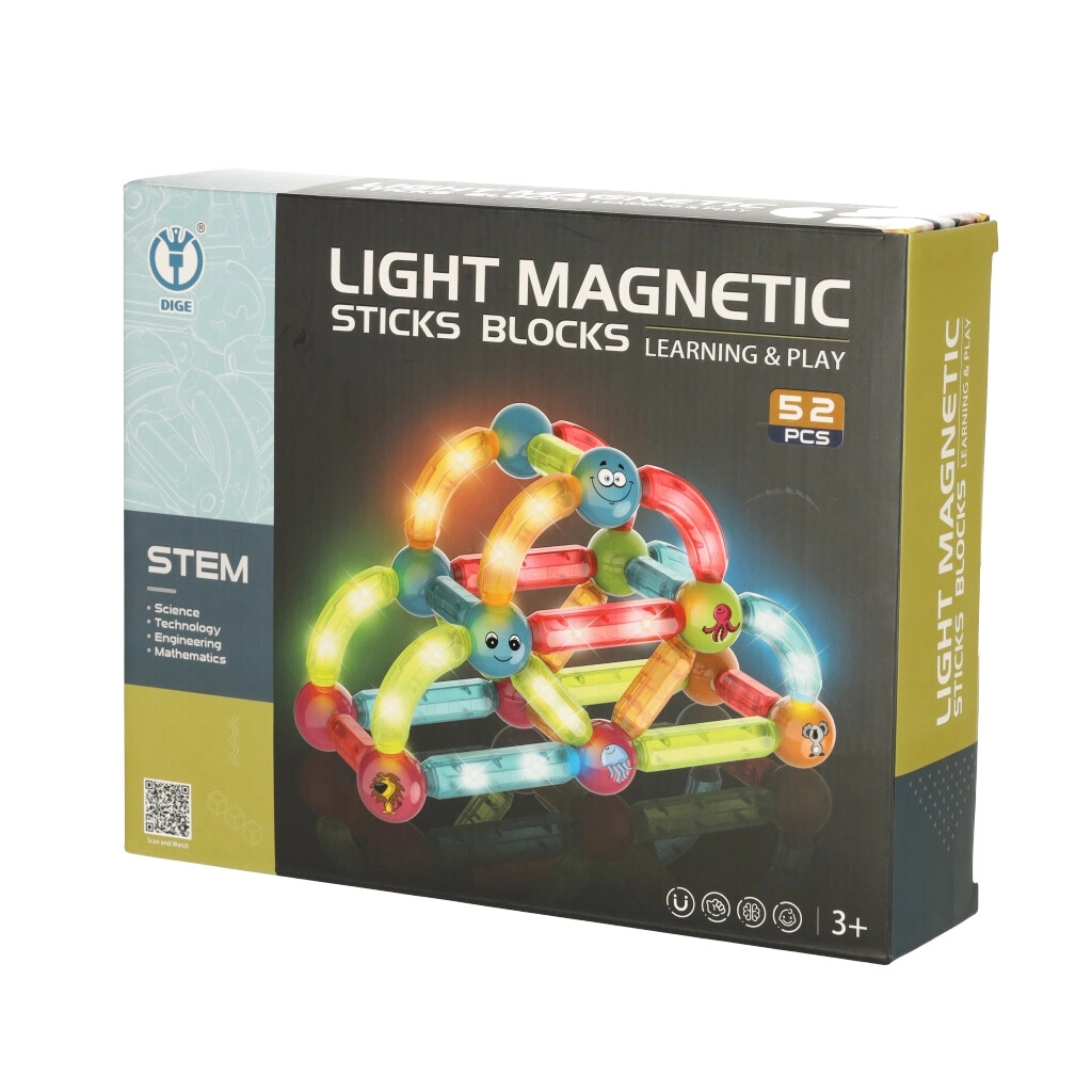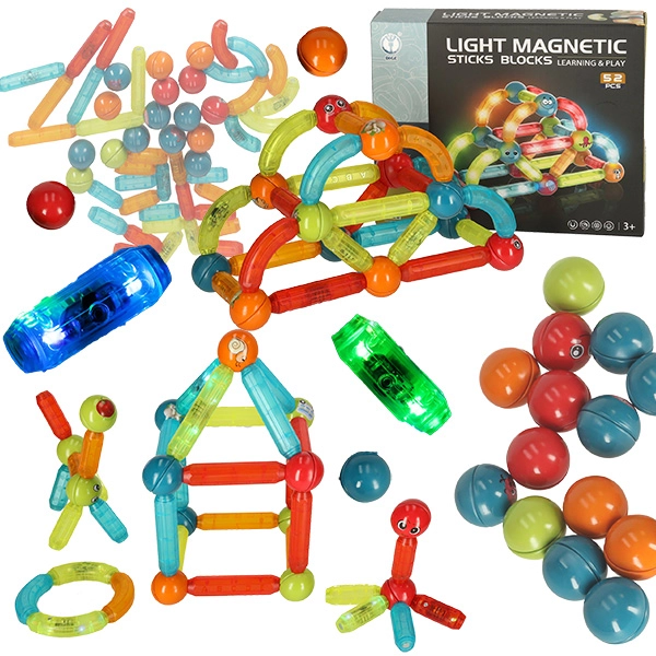 Dieses magnetische Bauset verbindet Spiel und Lernen. Große Bauteile sind ideal für jüngere Kinder, die beim Bauen Feinmotorik, Augen-Hand-Koordination und räumliches Vorstellungsvermögen trainieren. LED-Elemente verleihen jeder Konstruktion einen beeindruckenden Lichteffekt, der Kinder begeistert.