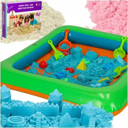 Das Set enthält einen aufblasbaren Sandkasten, in den der gesamte kinetische Sand eingefüllt werden kann. Der Sandkasten ist eine Kreativstation, in der die fantasievollsten Schöpfungen Ihrer Kinder entstehen!
