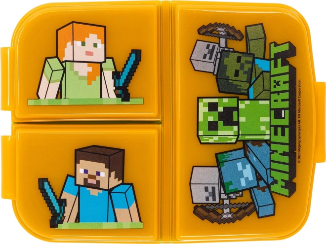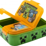 Machen Sie Kindern eine Freude mit einer stylischen Snackbox im Design des beliebten Spiels MINECRAFT. Dank drei separater Fächer trennen Sie Brot, Obst und kleine Snacks mühelos – alles bleibt frisch und ordentlich verstaut. Die kompakten Maße passen bequem in Schulranzen oder Rucksack.