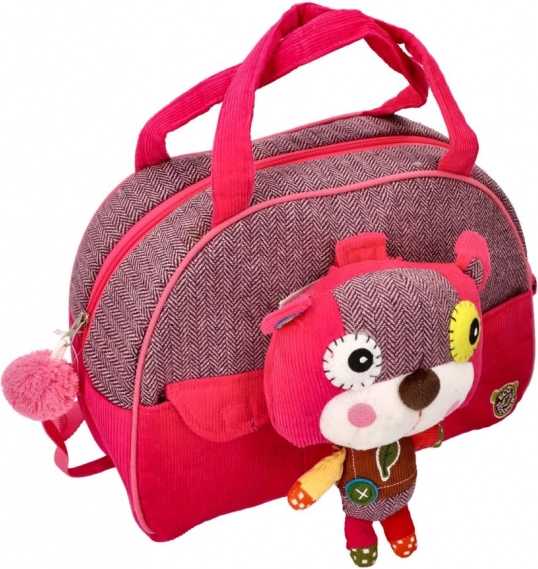 Der Bär mit seinem bunten Look verleiht der Tasche einen verspielten und individuellen Stil.