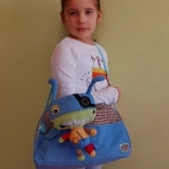 Der Rucksack ist in lebhaften Farben mit einem verspielten Plüschmonster gestaltet, das die Fantasie der Kinder anregt.