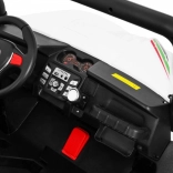 Eltern schätzen die 2,4‑GHz‑Fernbedienung mit drei Geschwindigkeiten und der Not‑Stop-Taste. Kleine Fahrer freuen sich über das Audio‑Panel mit FM‑Radio, MP3, SD, AUX und Bluetooth, Sounds am Lenkrad und die funktionale LED‑Beleuchtung mit Schalter. Für Komfort und Sicherheit sorgen der belüftete Sitz aus Ökoleder mit Verstellung, Sicherheitsgurte und zu öffnende Türen.