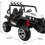 Der Grand Buggy 4x4 Lift ist ein geräumiges und robustes Fahrzeug für zwei Kinder, das dank großer EVA‑Räder, hinterer Stoßdämpfer und einer hohen Bodenfreiheit von 16 cm auch unebenes Gelände meistert. Vier 45‑W‑Motoren und zwei 12‑V/7‑Ah‑Akkus sorgen für sanftes Anfahren, Vor‑ und Rückwärtsfahrt sowie langen Spielspaß mit einer Ladung.