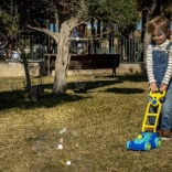 Die Fru Blu Sekačka ist ein fantastisches Spielzeug, das auf Knopfdruck Millionen kleiner Seifenblasen erzeugt. Die Seifenblasen von Fru Blu erreichen enorme Größen und haben erstaunliche Formen, die in allen Farben des Regenbogens glänzen.