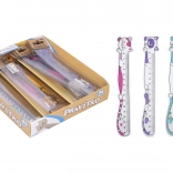 Praktisches und verspieltes Lineal mit Katzenmotiv, das den Schulalltag verschönert. Erhältlich in vier Farbvarianten: lila, rosa, türkis und orange.