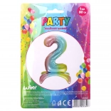 Dieser elegante Ballon in der Form der Ziffer 2 in Regenbogenfarben ist eine hervorragende Wahl für Geburtstagsfeiern, Jubiläen und Mottopartys. Dank seines glänzenden Finishs und des attraktiven Farbverlaufs entsteht eine auffällige Dekoration, die auf Fotos besonders gut zur Geltung kommt.