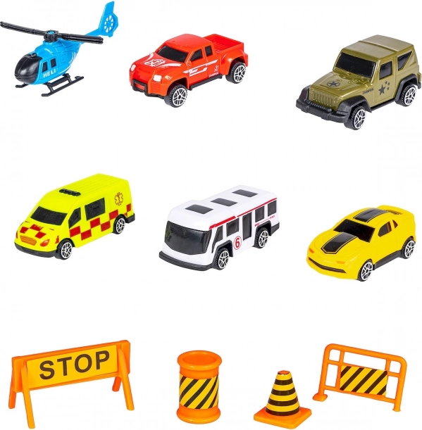 - **Inklusive Fahrzeuge**: Das Set umfasst 5 Autos und einen Hubschrauber, ideal für viele spannende Szenen.