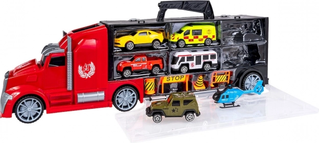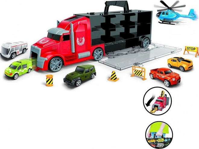 - **Praktischer Koffer**: Der LKW-Design-Koffer enthält separate Fächer für jedes Fahrzeug und lässt sich leicht transportieren.