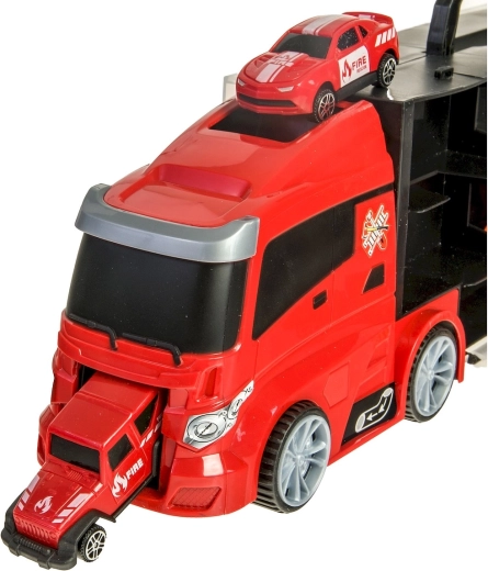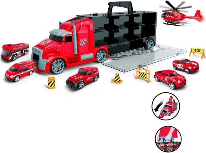 Dieses Set bringt eine komplette Welt der Rettungseinsätze in einer tragbaren Lösung. Der große rote Lkw fungiert als Aufbewahrungskoffer mit Fächern für jedes Fahrzeug sowie als Startrampe über die Kabine. So können Kinder sofort ihre eigene Rettungsmission starten.