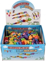 Dank des Metallrings lässt sie sich leicht an Schlüssel oder Rucksack befestigen. Erhältlich in einem bunten Mix aus Farben und Formen (Eidechse/Chamäleon/Schlange).