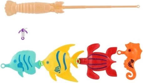 Im Set enthalten sind 4 bunte Fischchen und eine Kinderangel mit Haken. Dank der leichten Ausführung lässt sie sich auch von jüngeren Kindern gut handhaben. Geeignet für das Spielen im Kinderzimmer und im Wasser. Die Farbausführung der einzelnen Teile kann variieren.