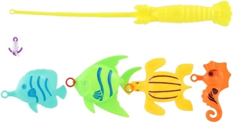 1× Kinderangel mit Haken, 4× Fischchen