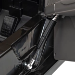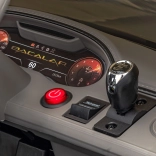 Für Sicherheit und Komfort sorgen weiche EVA-Räder mit hervorragender Dämpfung, ein Sitz aus Ökoleder mit aufwendiger Steppung sowie die 2,4-GHz-Fernbedienung mit drei Geschwindigkeiten und Not-STOP-Taste. Das Lichtpaket mit vorderen und hinteren LED-Leuchten erhöht die Realitätsnähe. Das Multimedia-Panel bietet Bluetooth, USB, MP3, vorinstallierte Melodien und einen AUX-Eingang zum Anschluss eines Telefons oder Players.