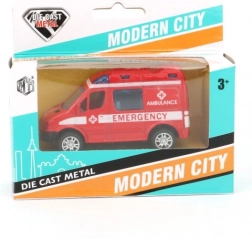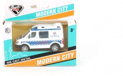 Stylisches Spielzeugauto für kleine Retterinnen und Retter sowie Polizistinnen und Polizisten: Metallmodell mit öffnenden Türen und Pull-Back-Antrieb. Erhältlich in 4 Designs (Polizei/Krankenwagen), ideal für Kinder ab 3 Jahren.