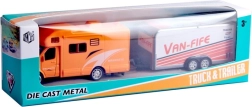 Wohnwagen mit Anhänger mit Pull-Back-Funktion – aufziehen und losfahren.