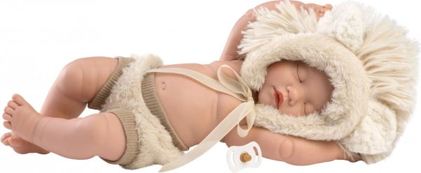 Diese schlafende realistische Puppe ist ideal für Kinder, die das Gefühl erleben möchten, sich um ein Baby zu kümmern. Dank des Ganzkörper-Vinyls kann die Puppe gebadet werden, und ihr Design erfasst jedes Detail des Babykörpers, einschließlich niedlicher Falten. Die Puppe hat gelenkige Arme und Beine, wodurch sie posierfähig ist und sitzen kann. Im Lieferumfang ist ein Schnuller enthalten, der als stylisches Accessoire dient. Diese Puppe wurde in Spanien handgefertigt und ist in einer schönen Geschenkbox verpackt.