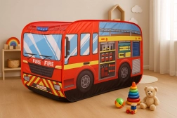 Stilvolles Kinderzelt in Form eines Feuerwehrautos für stundenlangen Spielspaß zu Hause und im Garten. Bietet schnelles Pop-up-Aufstellen, einen wasserabweisenden Boden, einen hinteren Eingang und ein aufklappbares Dach für noch kreativeres Spielen. Die leichte Polyesterkonstruktion lässt sich leicht transportieren und die farbenfrohen Feuerwehr-Grafiken begeistern jeden kleinen Helden.