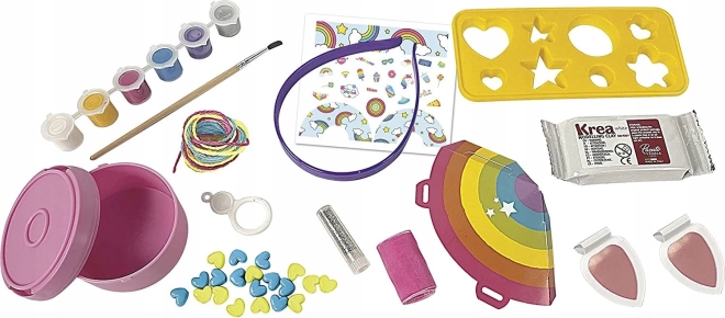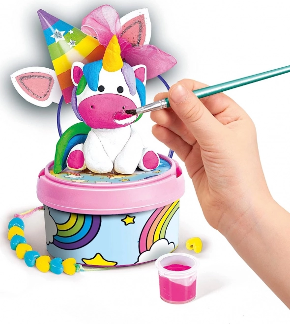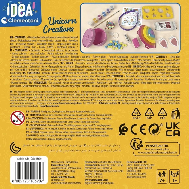 Mit Kreativität wird die Welt sofort bunter! Dieses Kreativset ermöglicht es, einen süßen Haarreifen, ein Perlenarmband, eine Schmuckschatulle oder eine Kleine Sachen Box mit einer Einhornfigur herzustellen. Zum Set gehört auch ein bunter Schlüsselanhänger mit Bommel. Es fördert die Entwicklung von Kreativität, Vorstellungskraft und handwerklichen Fähigkeiten.