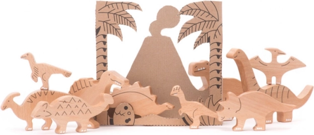Die Holz-Dinosaurier sind aus Buchenholz gefertigt, das für seine Haltbarkeit und Umweltfreundlichkeit bekannt ist. Die Spielzeuge sind mit unbedenklichen Farben lackiert.