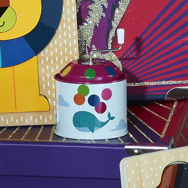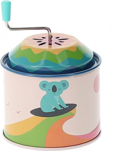 Diese traditionellen metallenen Spieluhren wurden entworfen, um nicht nur mit ihrer Funktion, sondern auch mit ihrem Design zu erfreuen. Jede Spieluhr ist mit fröhlichen Tiermotiven verziert, die sich um Themen wie Ballonfliegen, Bücherlesen oder Surfen drehen. Illustrator Andy Westface aus Hongkong bringt seine typische Verspieltheit und Farbenfreude, die ein Gefühl von Freude und Harmonie schaffen.
