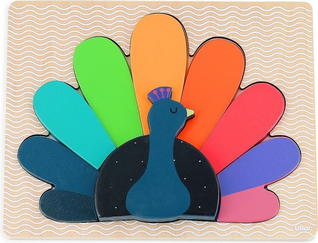 Entdecken Sie den Zauber der farbenfrohen Einlegepuzzles mit dem Motiv eines schönen Pfaus, der jedes kleine Kind begeistert. Dieses von dem Illustrator Andy Westface entworfene Puzzle bietet Kindern nicht nur Spaß, sondern auch die Möglichkeit, ihre sensomotorischen Fähigkeiten zu entwickeln.