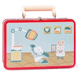 Dieses stylische Kinder-Zahnärzte-Set bietet alles, was man für die ersten Spiele in der „Zahnarztpraxis“ braucht. Die Holzinstrumente liegen angenehm in der Hand, sind sicher und langlebig, die Metallbox hält zu Hause wie unterwegs alles übersichtlich beisammen. Ideal zur Förderung sozialer Kompetenzen und zum Abbau von Angst vor dem Arztbesuch.