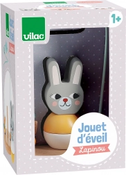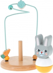 Dieses Holzlabyrinth mit Metallbahn und Hasenfigur bietet eine spielerische Aktivität, bei der Kinder Perlen und Formen (Möhre, Blatt) auf einer gewellten Strecke bewegen. Das Spielzeug fördert Feinmotorik, Konzentration und Geduld und ist dank des stabilen Holzsockels zugleich sicher und standfest.