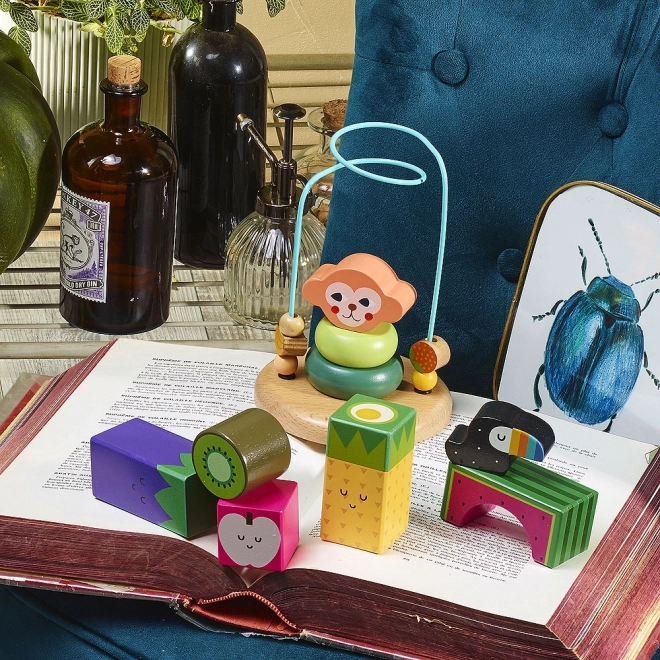 Entdecken Sie die unterhaltsame und ökologische Welt der Illustrationen der weltweit anerkannten Michelle Carlslund, die ihre sanften und poetischen Motive in dieses einzigartige Spielzeug eingebracht hat. Das Labyrinth mit Äffchen kombiniert Stapel-Elemente und bunte Metallringe, die Kinder zu Bewegung und Lernen motivieren. Das interaktive Design regt die kindliche Vorstellungskraft an und fördert gleichzeitig ihre sensomotorische Entwicklung.