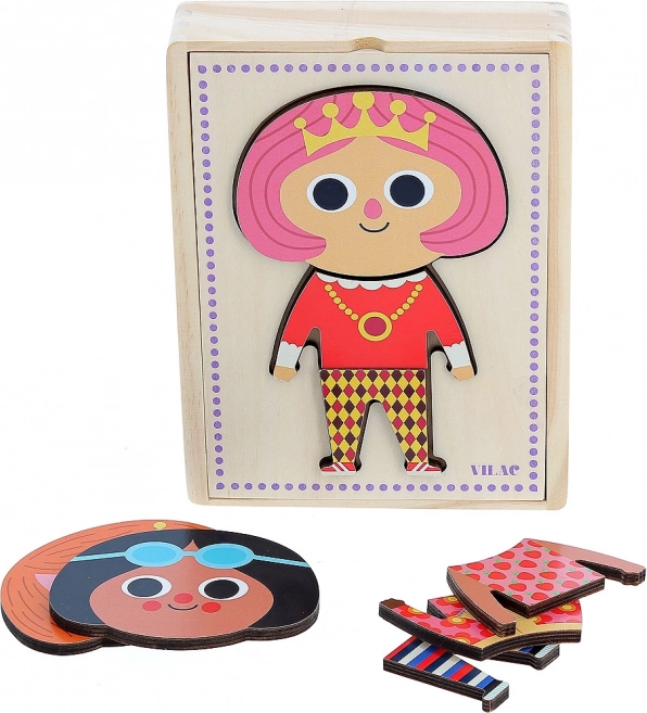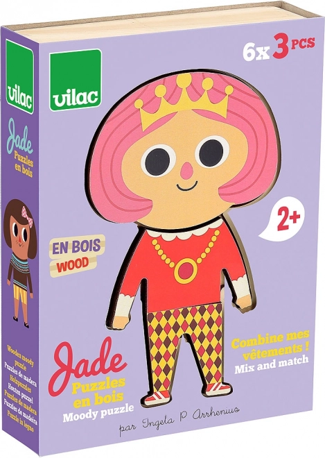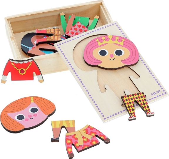 Dieses hölzerne Ankleidepuzzle bietet Kindern die Möglichkeit, die Figur Jade stilvoll zu kleiden. Mit 6 verschiedenen Outfits können Kinder die Kleidung kombinieren und ihre Vorstellungskraft fördern.