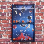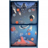 Dank der austauschbaren Mitte wählen Sie die Schwierigkeit im Handumdrehen: die klassische zentrale Einzelöffnung zum Trainieren der Präzision oder das anspruchsvollere Brett mit zwei außermittigen Öffnungen für geübte Schützen. Die robuste Holzkonstruktion, der sanfte Gleitlauf der Pucks und die retro Weltraum-Grafik garantieren langanhaltenden Spaß und einen stilvollen Look.
