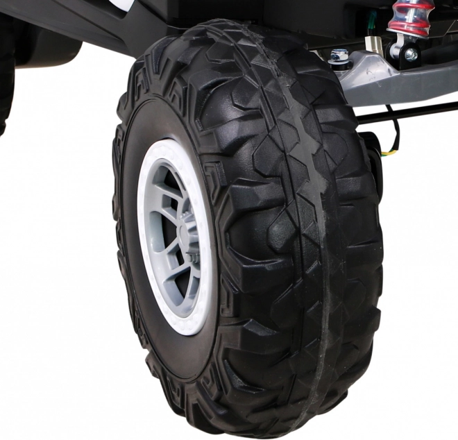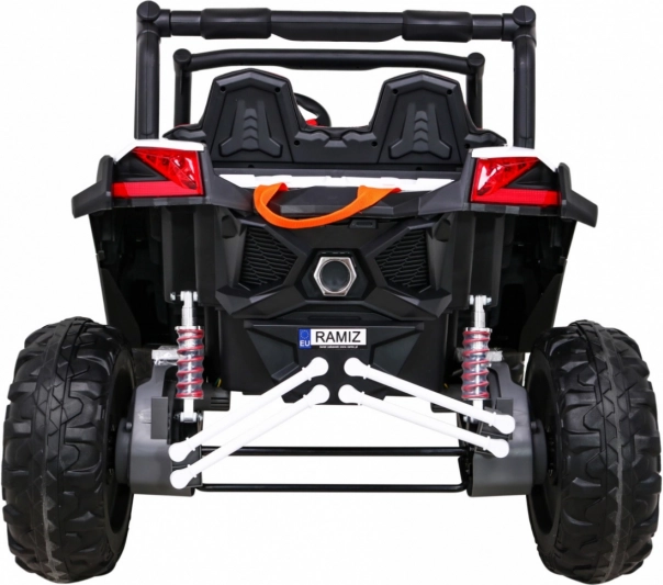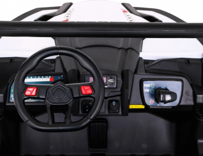 Erleben Sie Offroad-Abenteuer mit dem Kinderfahrzeug UTV-MX. Vier Motoren 4×60 W, eine hohe Bodenfreiheit von 29 cm sowie Federung vorne und hinten sorgen für souveränes Überfahren von Unebenheiten. Der langsame Softstart schützt den Komfort des kleinen Fahrers und erhöht die Sicherheit.