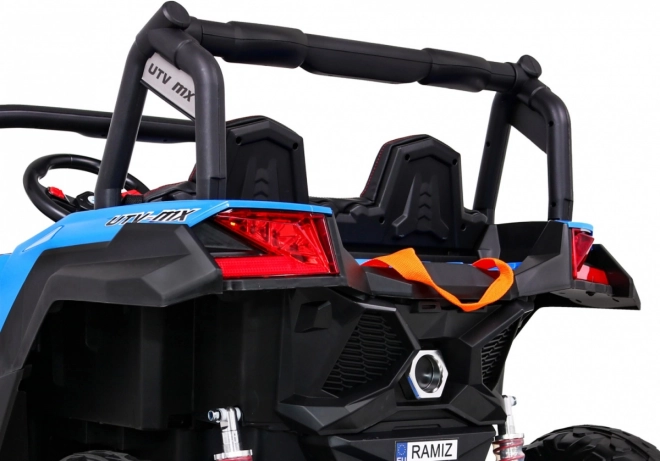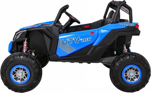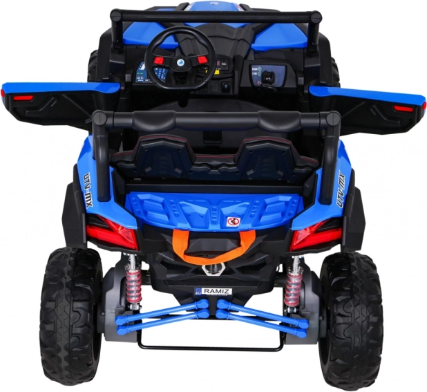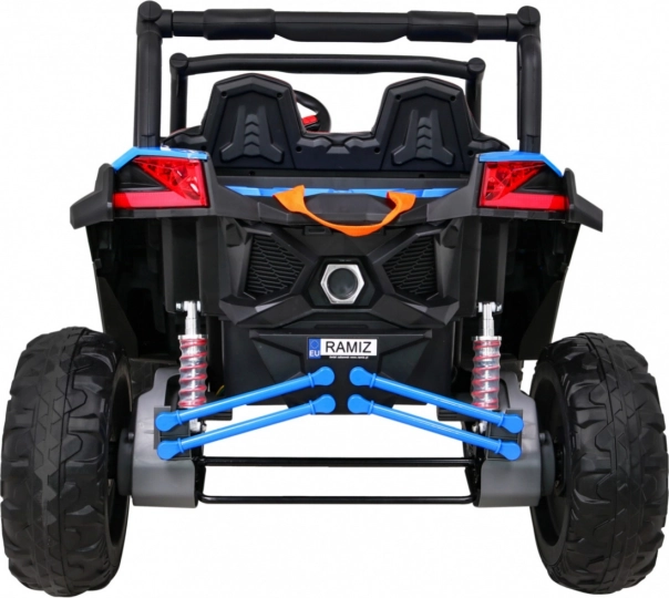 Das Buggy verfügt über LED-Beleuchtung vorne und hinten mit Schalter, Ladestatusanzeige, Vorwärts-/Rückwärtsfahrt und 2 Vorwärtsstufen, gesteuert per Schalthebel. Die robuste Konstruktion, große Bodenfreiheit von 29 cm und Tragfähigkeit von 50 kg machen dieses UTV zur idealen Wahl für Geschwister und längere Ausfahrten.