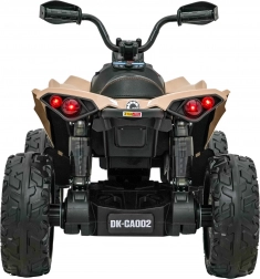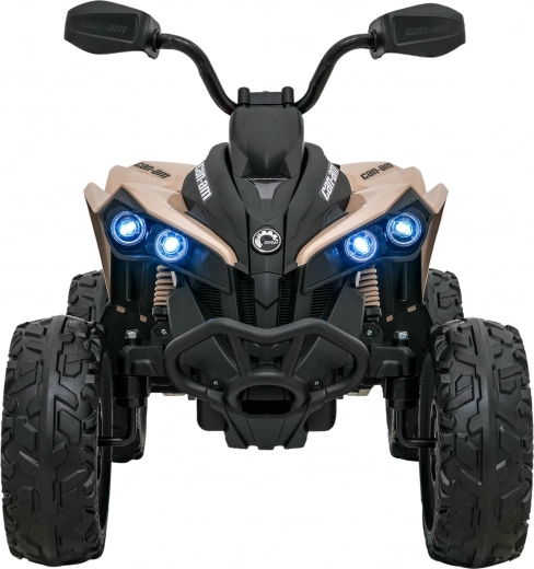 Das robuste elektrische Kinder-Quad Maverick ATV in Khaki bietet kleinen Fahrerinnen und Fahrern echtes Offroad-Feeling. Zwei starke Motoren 2 × 200 W, eine leistungsstarke Batterie 24 V / 5 Ah, große EVA-Räder mit Kugellagern und vollständige 4× Federung sorgen für eine ruhige und sichere Fahrt. Dazu kommen LED-Lichter vorne und hinten, ein weicher Sitz aus Eco-Leder und ein umfangreiches Audio-Panel mit Bluetooth, MP3, USB und FM-Radio.