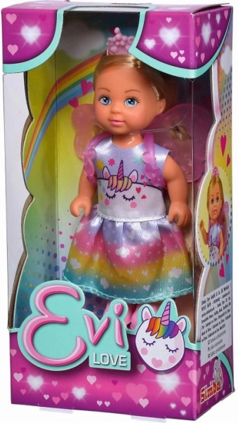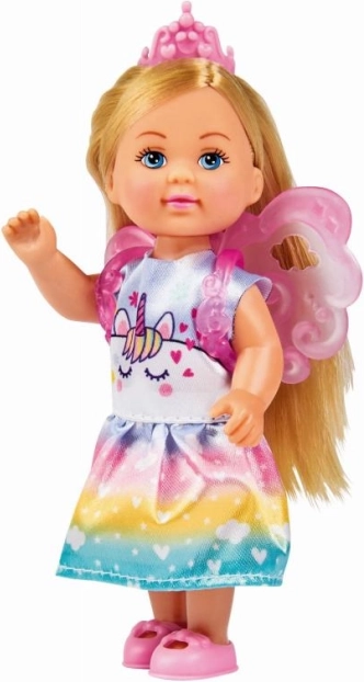 Entdecken Sie die zauberhafte Welt mit der Puppe Evi Love Unicorn Fairy. Dank des farbenfrohen Kleids mit Einhornmotiv, der glitzernden Krone und den abnehmbaren Flügeln können Kinder ganz leicht eigene, fantasievolle Geschichten erschaffen. Die kompakte Größe von 12 cm macht sie zur perfekten Begleiterin für den Rucksack und auf Reisen.