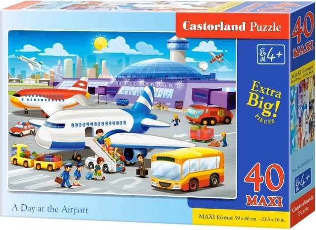 Entdecken Sie die Freude am Puzzeln mit dem Maxi-Puzzle Tag am Flughafen. Große und stabile Teile liegen Kindern gut in der Hand, satte Farben und präzise Stanzungen sorgen für ein angenehmes Puzzelerlebnis und ein schönes Ergebnis im Format 59 × 40 cm. Die Marke Castorland erfüllt internationale Qualitäts- und Sicherheitsstandards.