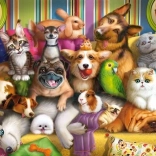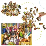 Die bunte Szene mit Hunden, Katzen und einem Papagei motiviert Kinder zum Puzzeln und bringt Freude am fertigen Bild.
