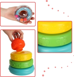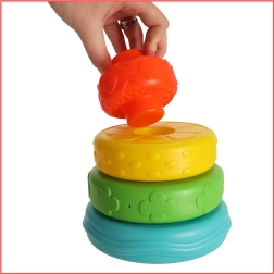 Dieser stabile und sichere sensorische Turm bringt Kindern die erste Freude am spielerischen Lernen. Ringe in verschiedenen Größen, Farben und Texturen unterstützen Feinmotorik, Augen-Hand-Koordination und Farberkennung. Einer der Ringe hat einen transparenten oberen Teil mit rasselnden Perlen und stimuliert damit auch das Hörvermögen.