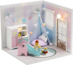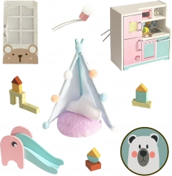 Gestalten Sie Ihr eigenes Kinderzimmer mit Mini-Küche, Rutsche und Bauklötzen. Diese Miniatur ist ideal zur Förderung der kindlichen Fantasie und des kreativen Denkens.