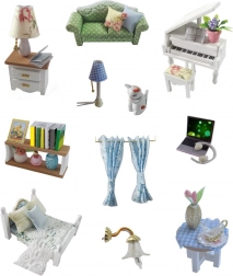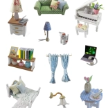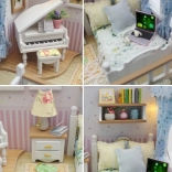 Gestalten Sie Ihr eigenes Miniatur-Interieur voller realistischer Details – ein gemütliches Sofa mit Kissen, ein elegantes Klavier, ein Bett mit Textilausstattung, Lampen, Regale und feine Dekorationen. Die integrierte LED-Beleuchtung sorgt für eine behagliche Atmosphäre und verwandelt Ihr Werk in eine einzigartige Dekoration für Regal oder Schreibtisch.