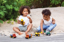 Abgerundete Formen und leichtes Greifen sorgen für sicheres Spiel für die Kleinsten. Dank seiner Größe passt der Traktor in den Rucksack oder in den Kinderwagenkorb und begleitet Kinder auf den Spielplatz, in den Park oder in den Sandkasten.