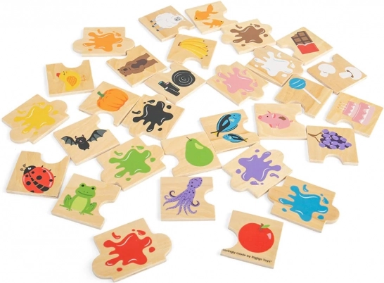 Entdecken Sie ein clever gestaltetes Lernspiel, bei dem Kinder farbgleiche Dreiergruppen bilden – zum Beispiel brauner Bär, Schokoriegel und brauner Klecks. 30 robuste Holzteile in 10 kräftigen Farben laden zum wiederholten Spielen ein und fördern ganz natürlich das Lernen der Farben sowie das Benennen von Objekten.