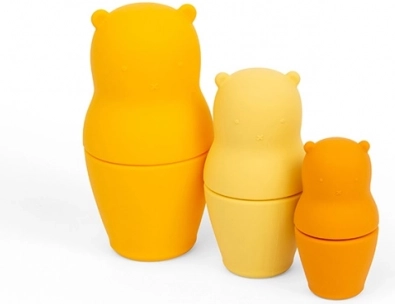Niedliche Silikon-Matrjoschka-Bären vereinen ein unterhaltsames Entwicklungs­spielzeug und ein praktisches Beißspielzeug in einem. Sie sind weich und flexibel, hergestellt aus 100 % lebensmittelechtem Silikon, das ungiftig ist, sich leicht reinigen lässt und gegen Bakterien und Flecken resistent ist. Ideal für Kinder ab 1 Jahr und eine schöne Dekoration fürs Kinderzimmer.