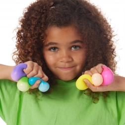 Teenie NEE DOH sind kleinere Versionen der ikonischen Knetbälle, entwickelt, um perfekt in Kinderhände zu passen. Dank der ultraweichen Füllung bieten sie einen angenehmen Widerstand beim Drücken und helfen, Stress und Unruhe abzubauen. Die Bälle lassen sich kneten, ziehen und plattdrücken – sie nehmen stets wieder ihre Form an.