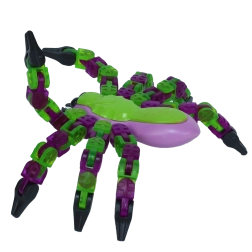 Segmentierte Beine und Körper lassen sich leicht in viele Posen biegen. Beim Bewegen der Teile erzeugt das Spielzeug ein angenehmes „Klicken“, was das sensorische Spielen fördert.