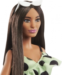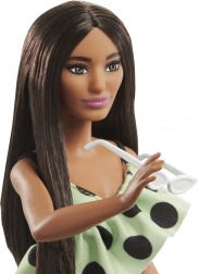 Entdecken Sie die Vielfalt der Barbie Fashionistas Kollektion, die Kinder dazu inspiriert, ihre Persönlichkeit über Stil auszudrücken. Diese Puppe mit einem originellen Körpertyp, langen braunen Haaren und einem auffälligen mintfarbenen, gepunkteten Overall wirkt trendig und bereit für jedes Abenteuer. Der Look wird durch eine weiße Sonnenbrille und Plateauschuhe unterstrichen, die endlose Kombinationsmöglichkeiten bieten.