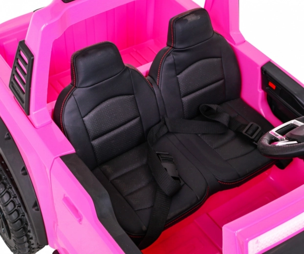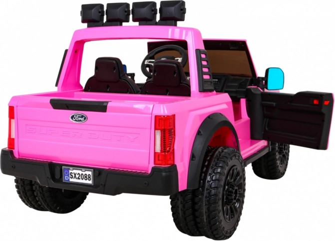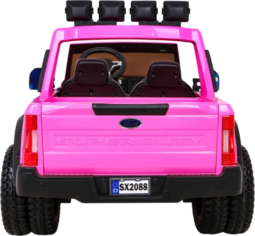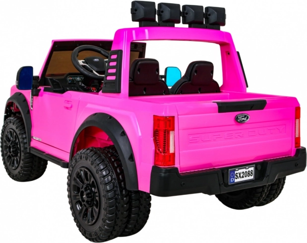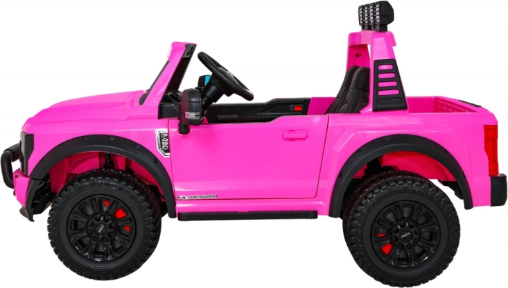 Der große rosa Ford Super Duty Pick-up ist für eine stabile und komfortable Kinderfahrt konzipiert. Vier 45-W-Motoren ermöglichen sanftes Anfahren und reichlich Kraft, während große EVA-Räder Unebenheiten hervorragend dämpfen. Für Sicherheit sorgen Sicherheitsgurte, die Fernbedienung mit STOP-Funktion und öffnende Türen für leichtes Einsteigen.