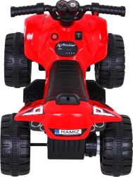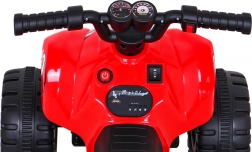 Dieses rote Kinder-Quad THE FASTEST ist eine hervorragende Wahl für kleine Fahrer. Es bietet eine einfache Bedienung über die Gas-Taste im Griff, Vorwärts- und Rückwärtsfahrt sowie einen bequemen Sitz mit den Maßen 26 × 13 cm. Das geringe Gewicht von 5,5 kg und die Bodenfreiheit von 7 cm machen es ideal für ebene Flächen zu Hause und im Garten.