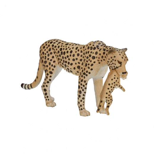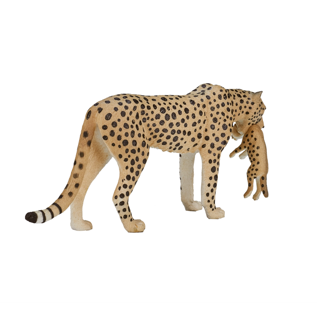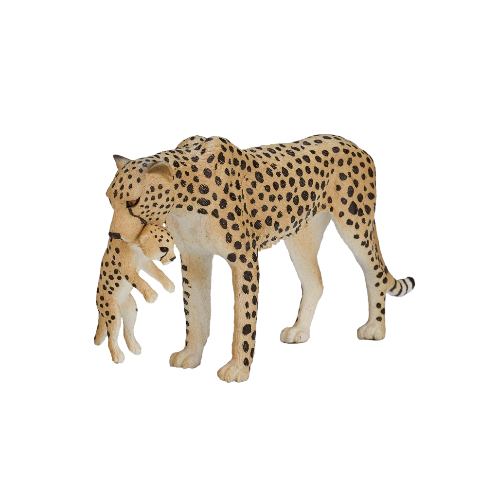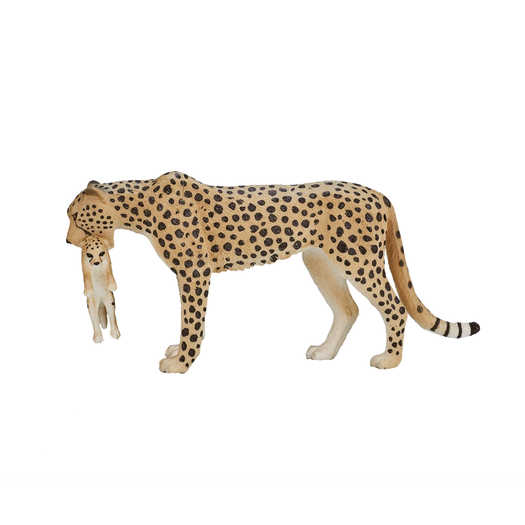 Entdecken Sie die Welt der Wildtiere mit der realistischen Figur eines Geparden mit Jungtier von Mojo. Das Modell überzeugt durch die detailreiche Darstellung von Fell und Färbung, dank der Kinder die charakteristischen Merkmale dieser schnellen Raubkatze leicht erkennen. Das robuste und unbedenkliche Material eignet sich perfekt für den täglichen Spielspaß und zum Lernen.